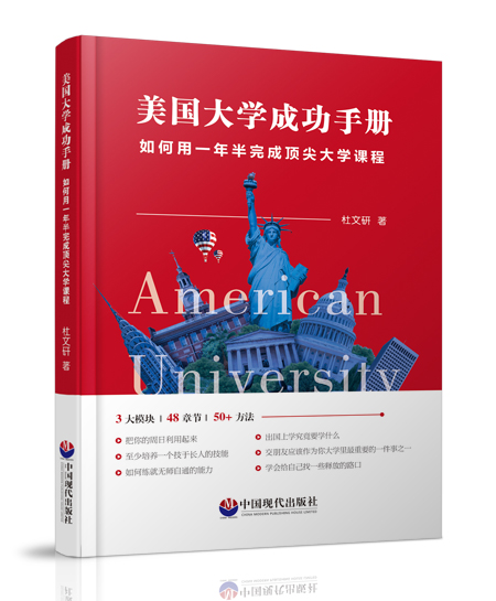 哈佛哥大毕业生杜文研新书《美国大学成功手册》近日由中国现代出版社正式出版,这本书记录了作者留美多年的心路历程。在投身于国际教育行业多年后,作者以过来人的视角总结了很多在留学期间的经验及技巧注入到此书。全书共48章分为三个部分,分别为学习篇,生活篇以及个人成长篇。旨在提供给即将赴海外留学的学生在留学前,中,后期三个阶段的全方位的帮助。